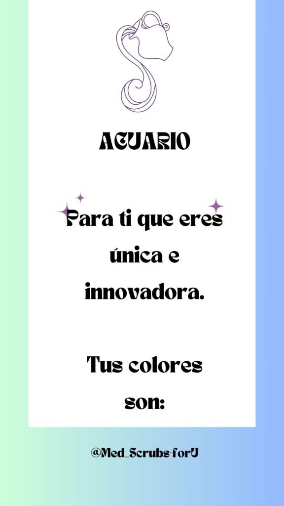 Acuario siempre está un paso adelante. No te gusta lo tradicional y prefieres lo diferente, lo innovador, lo único. Tus scrubs deben tener un giro inesperado, algo que nadie más se atreva a usar.